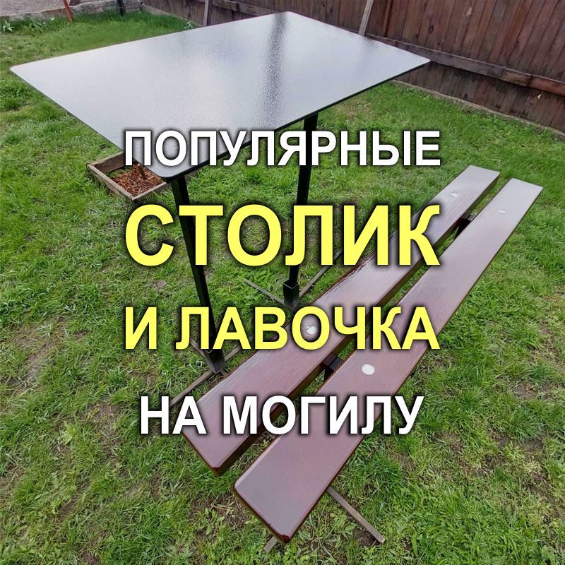 Изделия достаточно прочные, чтобы много лет прослужили на могиле. А столик на двух ножках, а не на одном столбике, чтобы не наклонялся со временем при просадке грунта.
