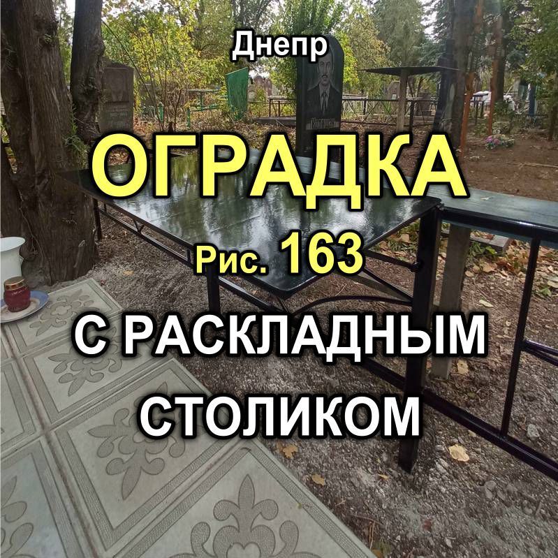 Смотрите очередной вариант оградки с рисунком №163 по нашему каталогу оградок, только здесь в секцию вмонтирован раскладной столик.